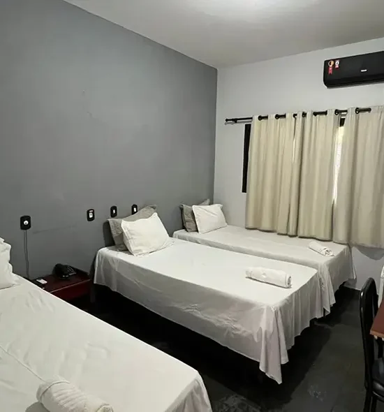 Conforto individual para três pessoas. Ideal para amigos ou colegas de trabalho, o Triplo Solteiro conta com três camas de solteiro em um ambiente espaçoso e bem equipado, garantindo conforto, praticidade e privacidade para todos.